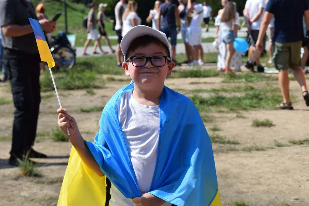 - mówi Olena, która mieszka w Łodzi od roku.Na flagę słowa otuchy wpisują zarówno rodziny ukraińskie jak i polskie. Chętni mogą też obejrzeć broń i zrobić z nią zdjęcie.