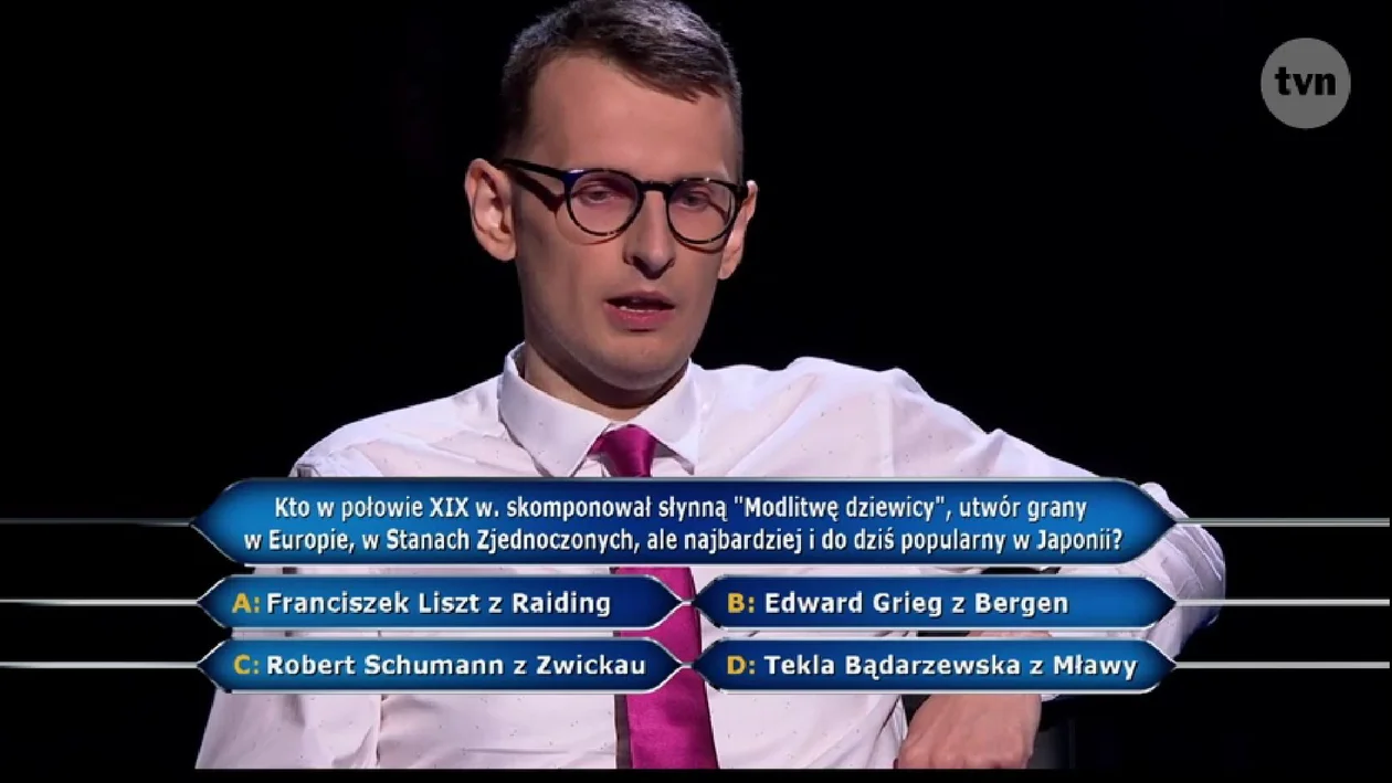 Kto w połowie XIX w. skomponował słynną "Modlitwę dziewicy", utwór grany w Europie, Stanach Zjednoczonych, ale najbardziej i do dziś popularny w Japonii?" - tak brzmiało pytanie za milion złotych. Do wyboru były następujące odpowiedzi: