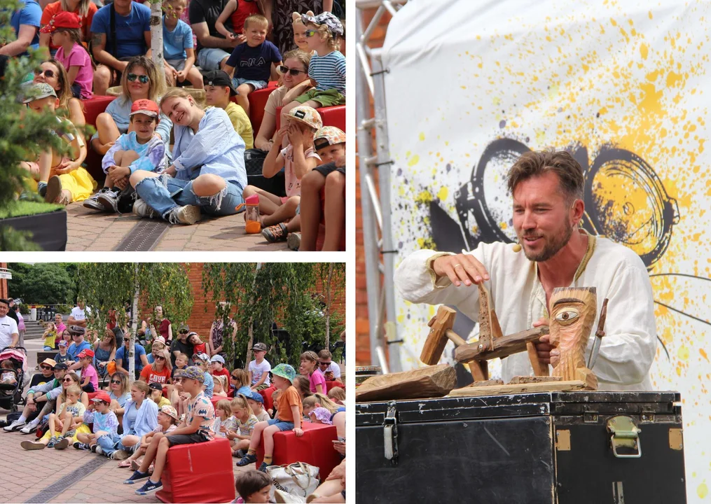 Niezwykłe przygody Piecucha na rynku Manufaktury. Plenerowe spektakle dla dzieci mają swoich fanów [zdjęcia] - Zdjęcie główne