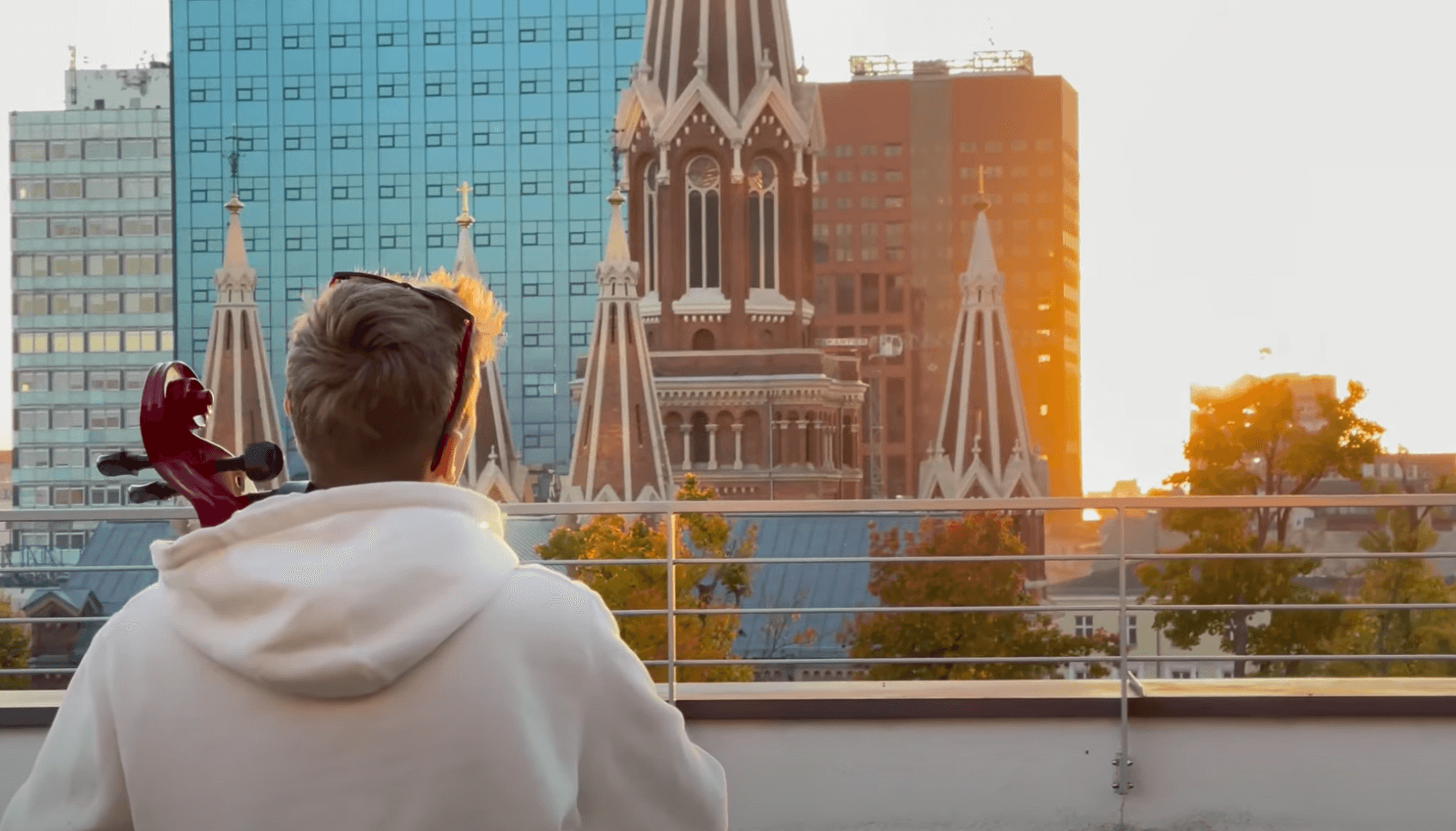 - Zależało mi na tym, by uchwycić ładny zachód słońca w centrum miasta. Tak się złożyło, że akurat znajomi mogli mi udostępnić taras na budynku w Łodzi i tam mogłem nagrać wideo - mówi Janek Diug.