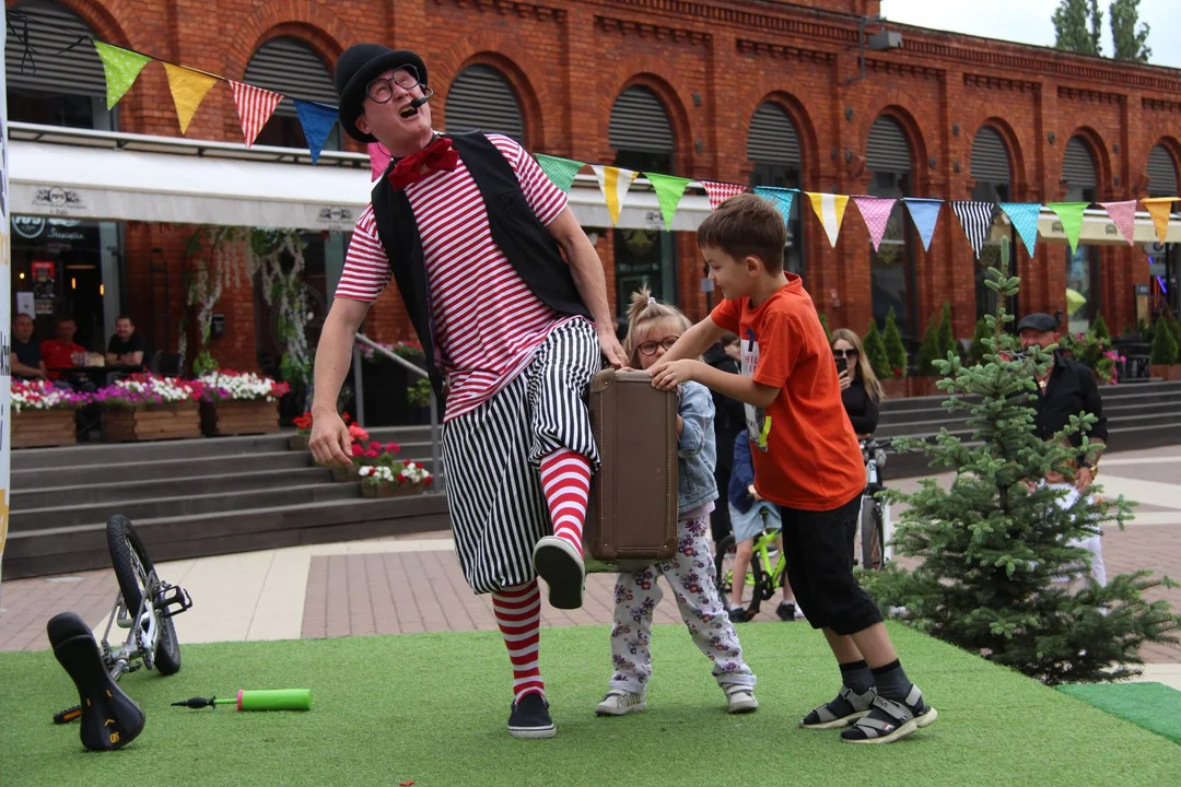 Wszystko, co ma dla widzów, mieści się w jego czarodziejskiej walizce. Klown Tobi zaprezentował na rynku Manufaktury "Tobi Show". To spektakl Cichego Teatru. Śmiechu było co niemiara. Mali i więksi widzowie mogli podziwiać żonglerkę maczugami, była też szklana kula, jazda na jednokołowym rowerze i mrożąca krew w żyłach próba z nożami, której podjął się odważny tata Piotr.