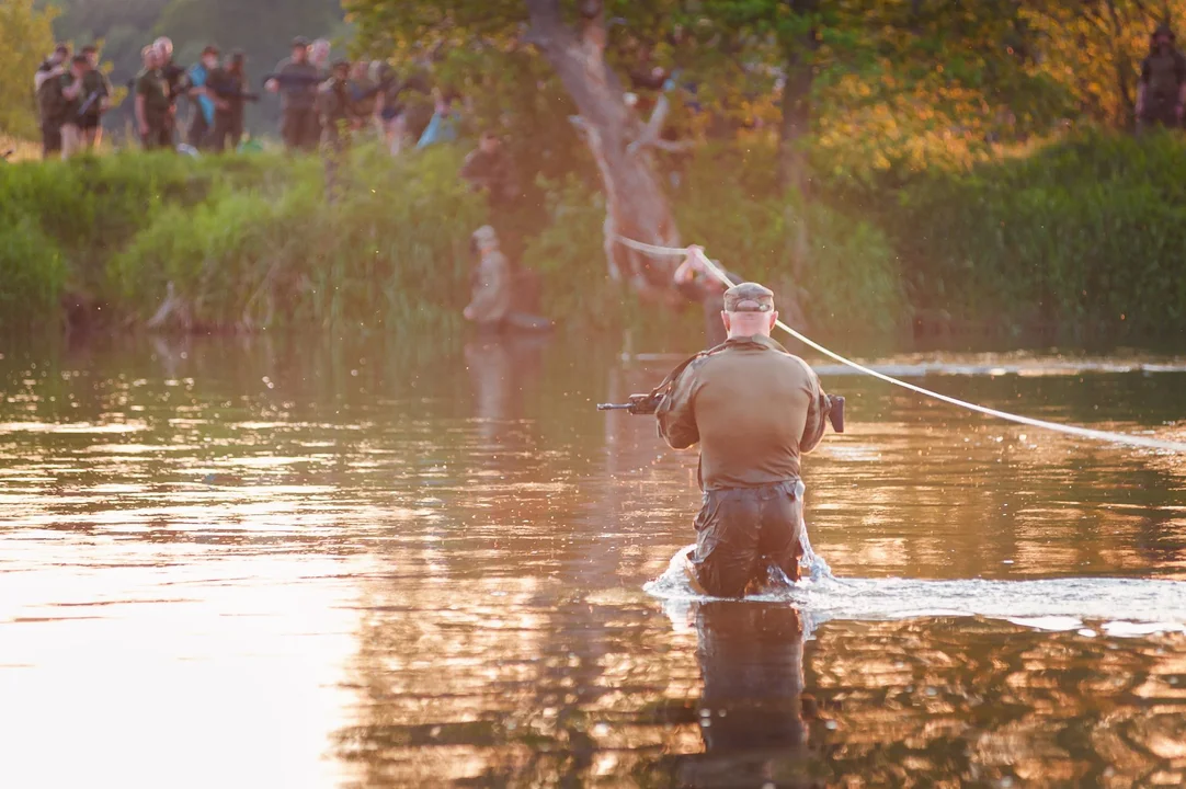Przed żołnierzami znajdował się 25-kilometrowy dystans do przemarszu w terenie leśnym wraz z zaplanowanymi zadaniami do wykonania. W godzinach popołudniowych i nocnych terytorialsi zrealizowali przeprawę wodną przez Pilicę z wykorzystaniem liny poręczowej. Ponadto żołnierze uczyli się technik zabezpieczania wyposażenia indywidualnego podczas takiej przeprawy.