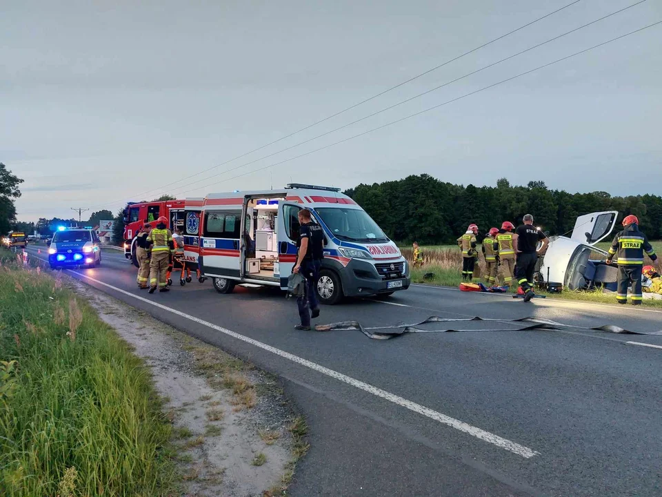 Poszkodowana została przetransportowana do szpitala. Droga była zablokowana w obu kierunkach.