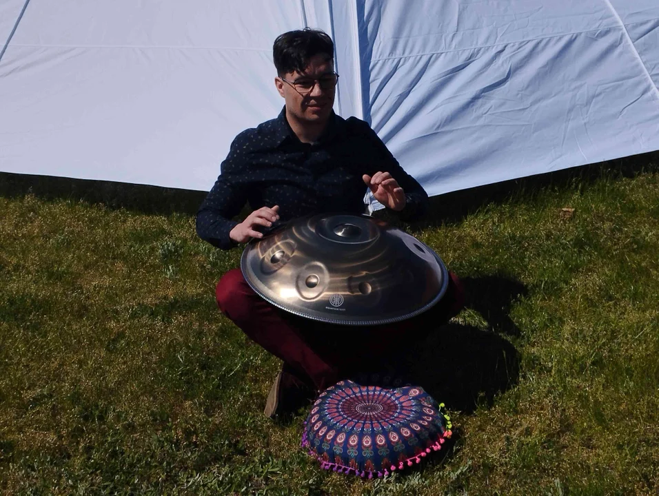 Każdy, kto chciał skorzystać ze słonecznej pogody i zaczerpnąć świeżego powietrza w pięknych okolicznościach przyrody wokół budynków ŁSSE, mógł wyjść do zewnętrznej strefy chillout. Czekały tam kolorowe leżaki, namiot wypełniony poduchami, na których można było odpocząć, oraz... automat z kawą. Relaksującym się przygrywał na gongach tybetańskich Jakub Rybka.