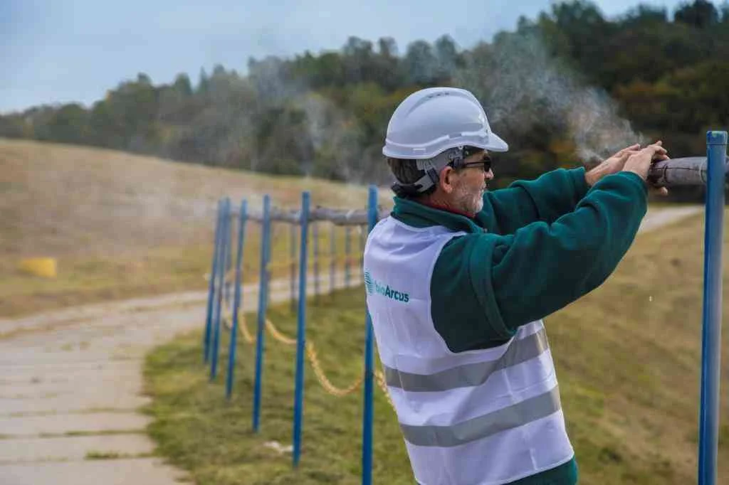 - System obejmuje dwa odcinki przewodów wysokociśnieniowych zawieszonych na 46 słupach, na wysokości około 6 metrów nad ziemią. Specjalne dysze rozpylają pod wysokim ciśnieniem mgiełkę z mikroskopijnych kropli wody i preparatu antyodorowego. Preparat, składający się z substancji naturalnych i olejków eterycznych, działa jak magnes, przyciągając i neutralizując molekuły odorowe
