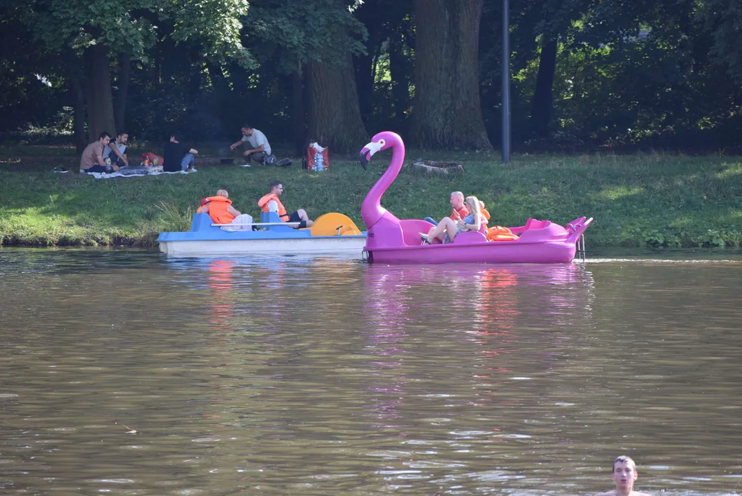 Po ostatnich burzach i ulewach woda szybko opadła i powróciły upały. Mieszkańcy postanowili wykorzystać weekend i udali się na Stawy Jana, gdzie kąpią się w wodzie i pływają na rowerkach.