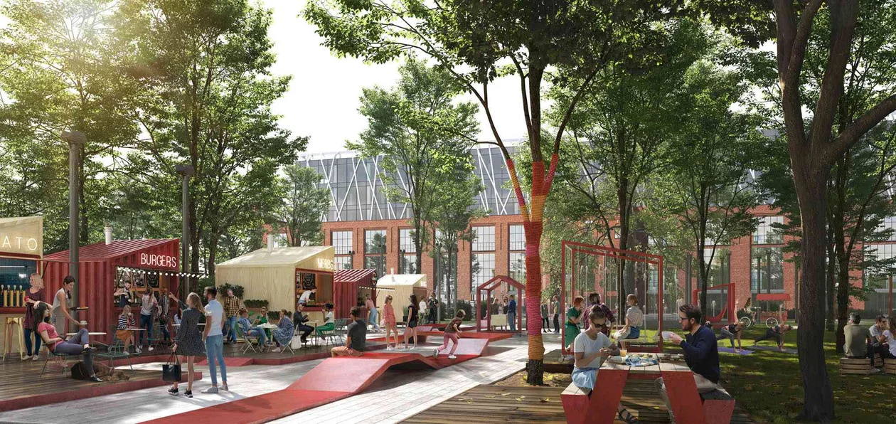 Na terenie WI-MY znajdą się zarówno apartamenty, obiekty handlowe i gastronomiczne, a także tereny zielone oraz miejsca przeznaczone do organizacji wydarzeń kulturalnych. Działa już tam siłownia sieci Fit Fabric, która zajęła cały odrestaurowany budynek D od strony al. Piłsudskiego. W parku pojawiły się nowe alejki i mała architektura. Trwają prace przy dwóch budynkach mieszkalnych z dodatkowymi punktami usługowo-handlowymi.