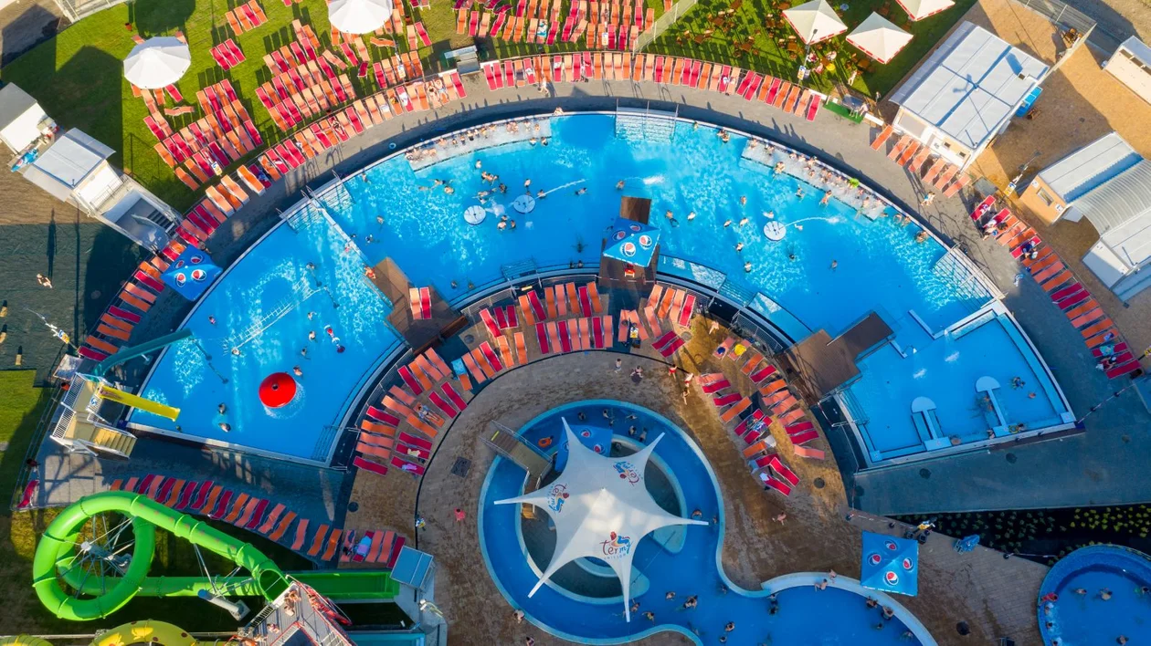 W środku znajdują się dwa baseny - ze statkiem pirackim oraz solankowo uzdrowiskowy. Na zewnątrz jest ich więcej, do tego strefy relaksu: