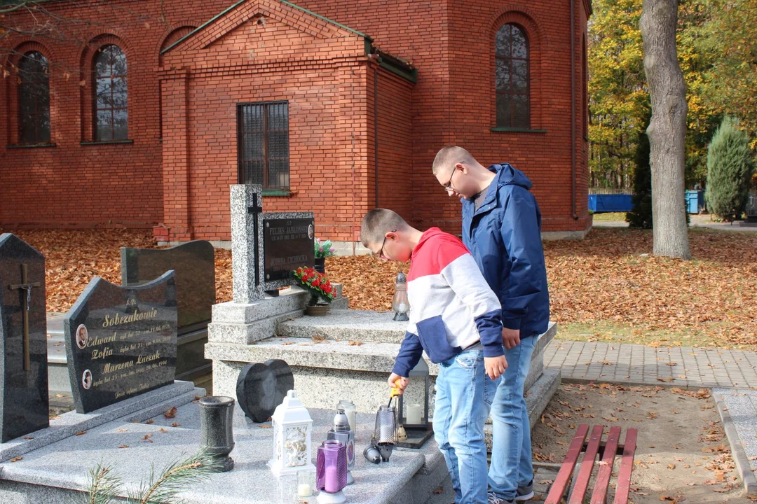 - Mieszkam w Łodzi, ale pochowani są tutaj moi bliscy, dziadkowie, czyli rodzice taty. Zawsze, jak tutaj jesteśmy, to moi synowie zapalają znicze na mogiłach żołnierzy - mówi pani Karolina, którą spotkaliśmy na miejscu.