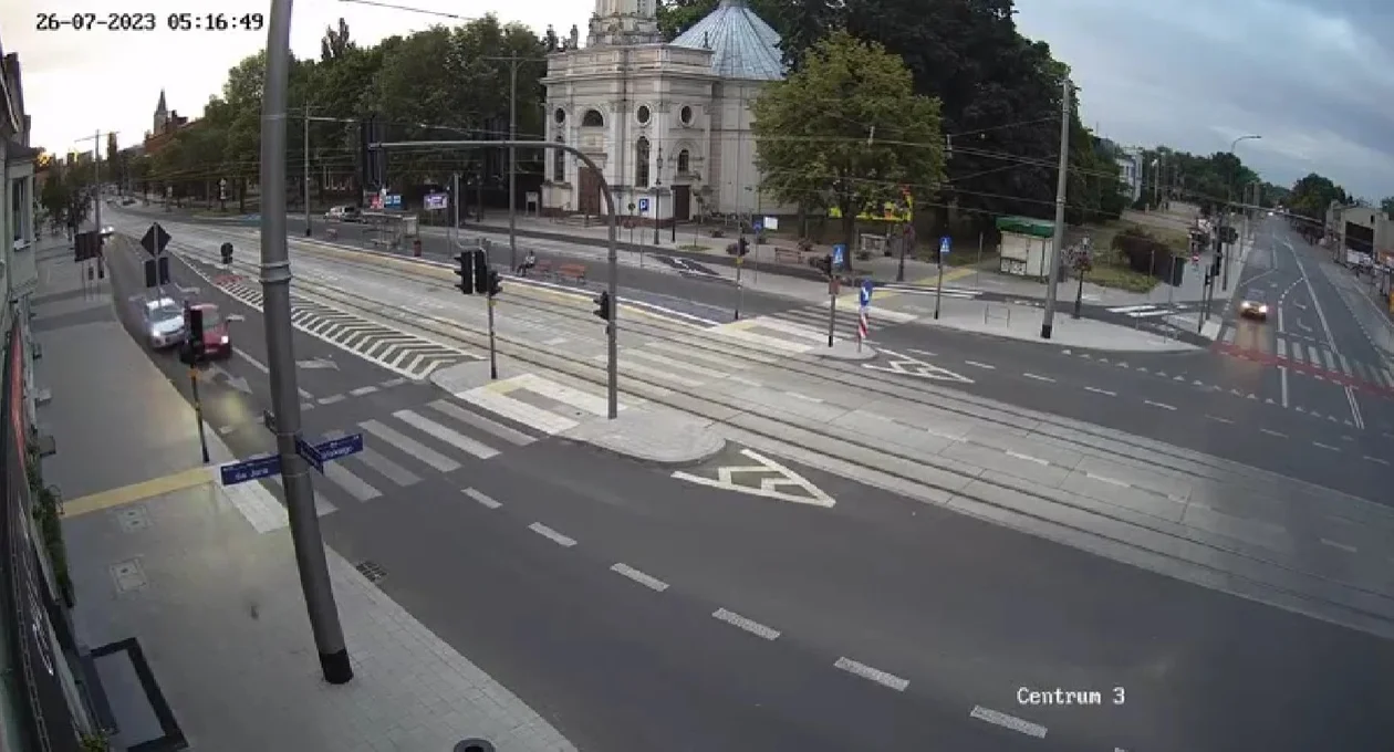 Na filmie widać, że oba samochody jadą ul. Zamkową w tym samym kierunku. Kierująca mazdą kobieta próbuje zmienić pas ruchu i wyprzedzić chevroleta. W końcu czerwony samochód wjeżdża tuż przed maskę chevroleta i... zostaje przez niego staranowany.