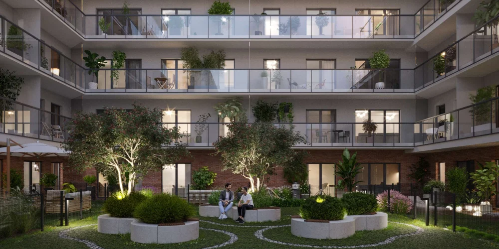 Taras to jednak tylko jeden z elementów przemyślanego ekosystemu udogodnień. Strefa fitness pozwoli mieszkańcom zadbać o kondycję bez wychodzenia z budynku. Zewnętrzna przestrzeń do street workoutu odpowie z kolei na potrzeby tych, którzy wolą ćwiczyć na świeżym powietrzu. Wypożyczalnia rowerów i hulajnóg wspierać będzie codzienną mobilność, a plac zabaw dla dzieci dopełni obraz miejsca przyjaznego rodzinom. W inwestycji zaplanowano też reprezentacyjne, eleganckie lobby, starannie zaprojektowane dziedzińce, zieleń i przestrzenie wspólne.