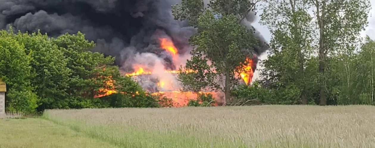 - Pali się kompleks budynków o stalowej konstrukcji i wymiarach 30 na 10 na 6 metrów. W środku są maszyny rolnicze. Nie ma osób poszkodowanych. Sytuacja pożarowa jest opanowana