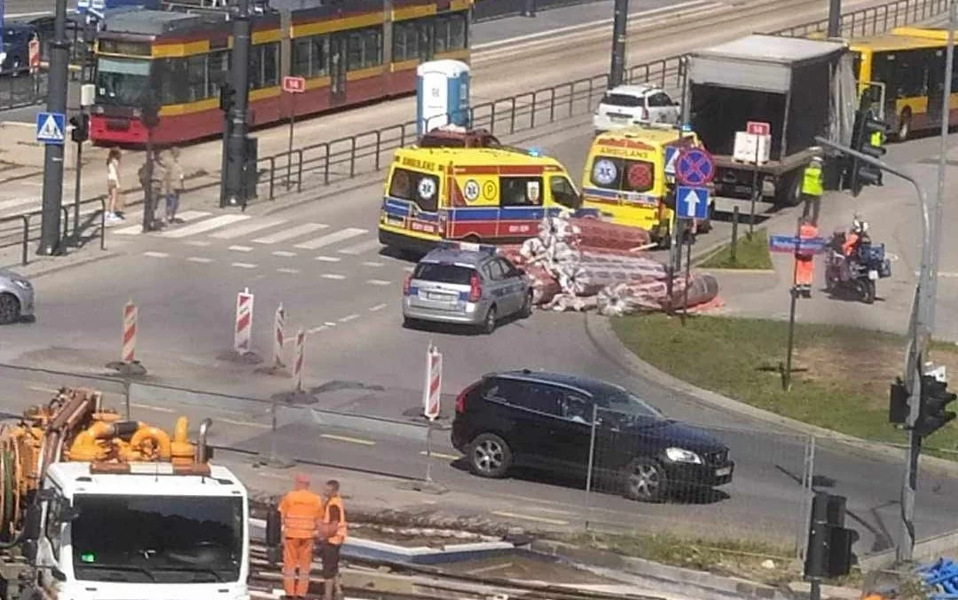 Ładunek wypadł z samochodu wprost na przechodniów