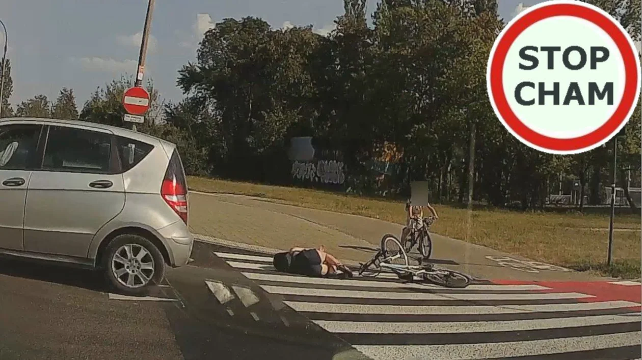 Na filmiku udostępnionym na Stop Cham widać, że potrąconej rowerzystce towarzyszyło dziecko.
