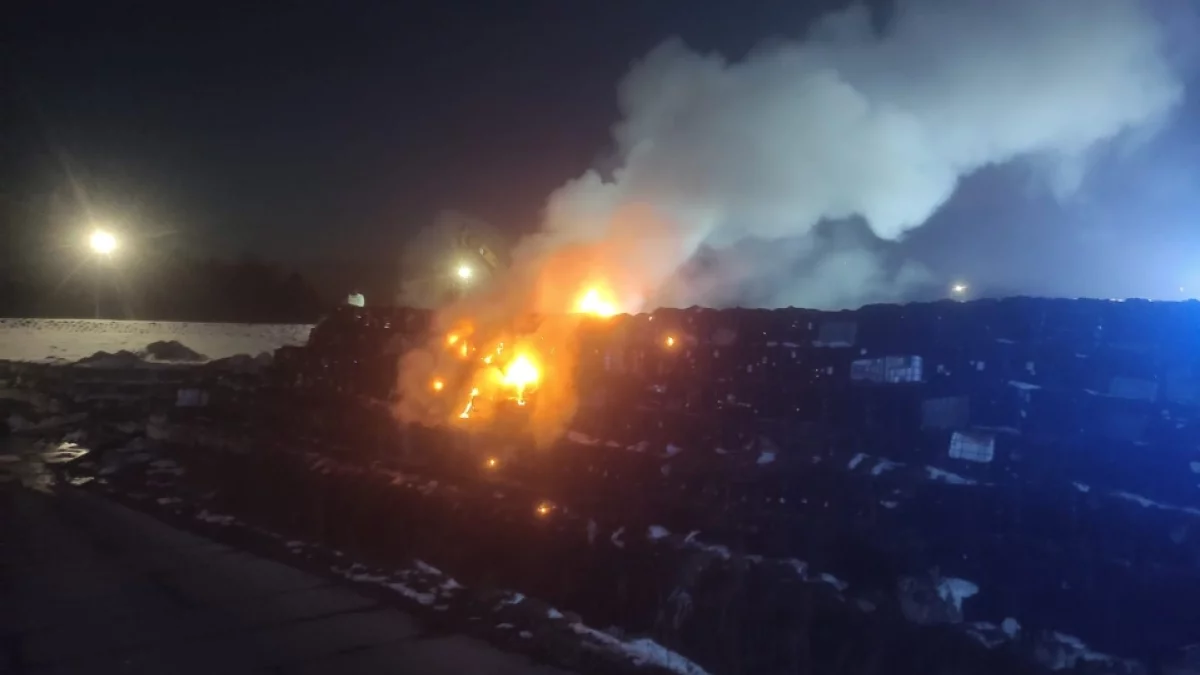 Hałda to składowane zbiorniki typu "mauser" z odpadami. Sytuacja pożarowa nie opanowana