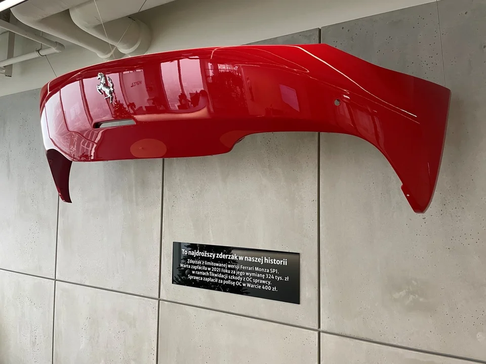 Firma ubezpieczeniowa przyznaje, że zderzak unikatowego samochodu to jedna z droższych części, za jaką przyszło im zapłacić. Dlatego też nie trafił on na złom, ale wisi na ścianie w warszawskiej siedzibie Warty.