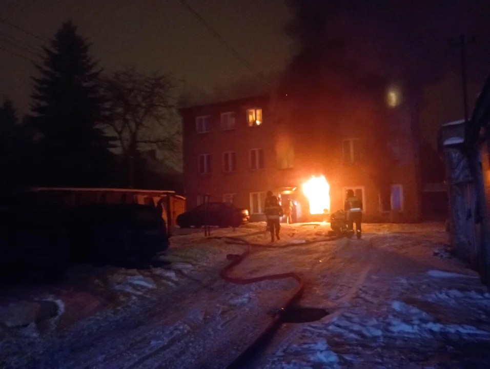 Z okna w mieszkaniu na parterze buchały płomienie. Z drugiego okna w mieszkaniu wydobywał się gęsty dym. Na miejscu pojawiły się trzy wozy straży pożarnej. Strażacy walczą z żywiołem. Na ten moment nie wiadomo czy ktoś był w środku.