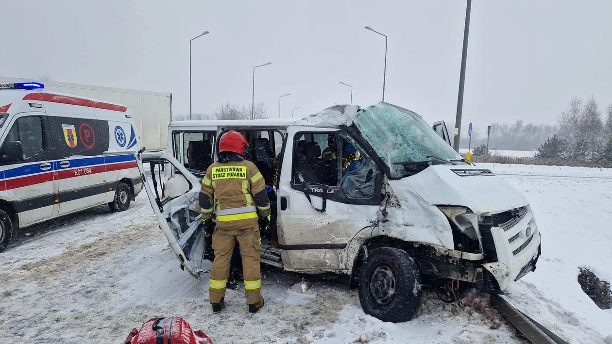 W Strykowie w piątek (16 grudnia) doszło do poważnego wypadku. O godz. 9.24 zderzył się tam samochód dostawczy z ciężarówką.