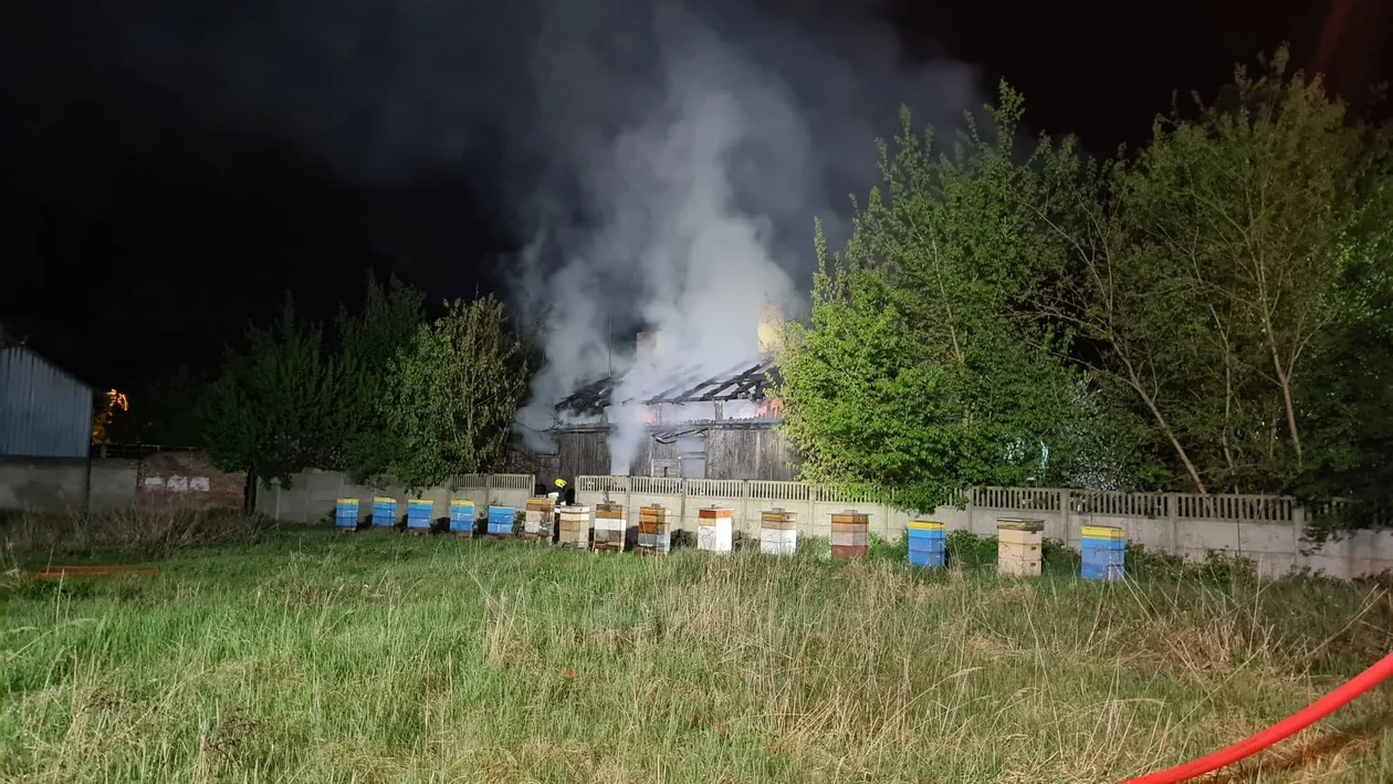 Strażacy z powiatu zgierskiego uratowali ule, które znajdowały się w pobliżu płonącego pustostanu | KP PSP w Zgierzu