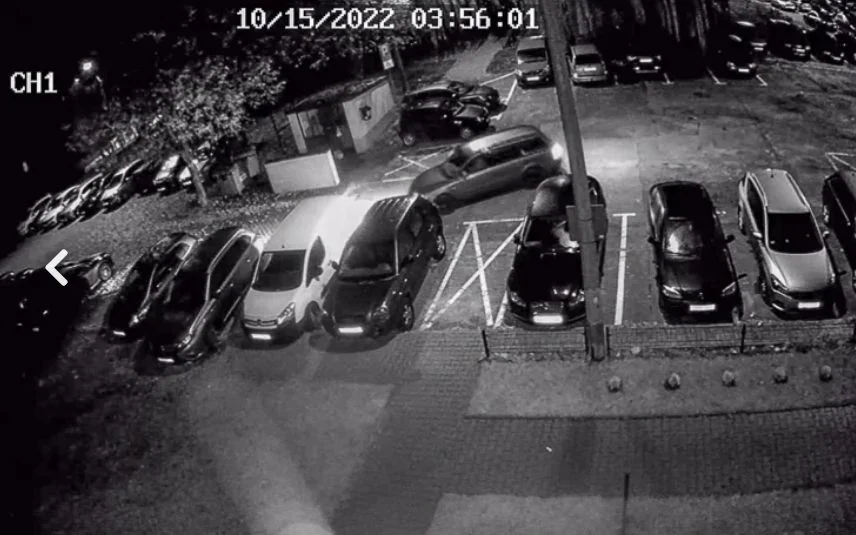 Sprawę opisuje także portal Dzień Dobry Bełchatów. Na nagraniu widać cały proceder. Samochód wjeżdża na parking, wykonuje kilka manewrów, oświetlając zaparkowane auta, po czym powoli wycofuje się i odjeżdża w kierunku innego bloku. Kilka minut później zakapturzona postać z plecakiem wyłania się właśnie z tego kierunku. Na nagraniu niedokładnie widoczna jest czapka z daszkiem oraz plecak. Osoba ta śmiałym krokiem zmierza do zaparkowanego pod latarnią mitsubishi outlandera, po czym kładzie się pod spód. Po około 15 minutach wyczołguje się i przemieszczając wzdłuż bloku 146, znika w ciemnościach. Nikt w tym czasie nie przechodzi obok, brak jest bezpośrednich świadków. Jedna z mieszkanek bloku relacjonuje, że ok. 4:30 słyszała dobiegający zza okna hałas „jakby szuranie szpadlem”. Na zewnątrz nic jednak nie było widać. Mógł to właśnie być odgłos piłowanego metalu. O nieprzypadkowym zbiegu okoliczności mówią też lokalni serwisanci, którzy z początkiem tygodnia spotkali się z pytaniami o katalizatory właśnie do samochodów mitsubishi.