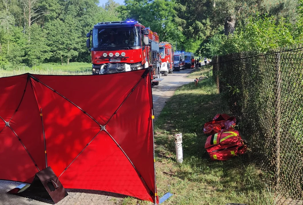 Na miejscu działają służby – straż pożarna, pogotowie i policja pod nadzorem prokuratury. Droga jest zablokowana.