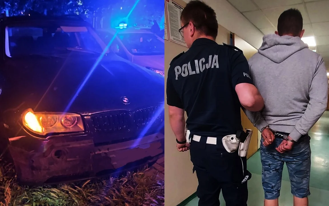 Dodatkowo 30-latek był pijany, miał ponad 2,5 promila alkoholu w organizmie. To nie koniec jego przewinień. Bmw, którym podróżował, było kradzione.