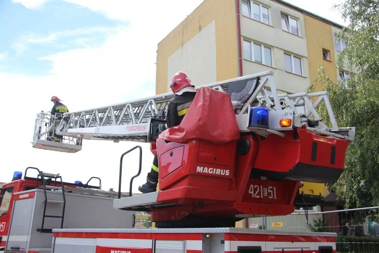 Autor: TuLodz.pl | Opis: Strażacy dostali się do mieszkania seniorki przy pomocy podnośnika.