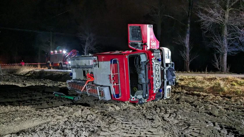 Wóz strażacki został wyciągnięty z pobocza, a po sprawdzeniu jego stanu technicznego wróci na drogi powiatu zgierskiego. Sprawą zajmuje się policja i szuka świadków zdarzenia.
