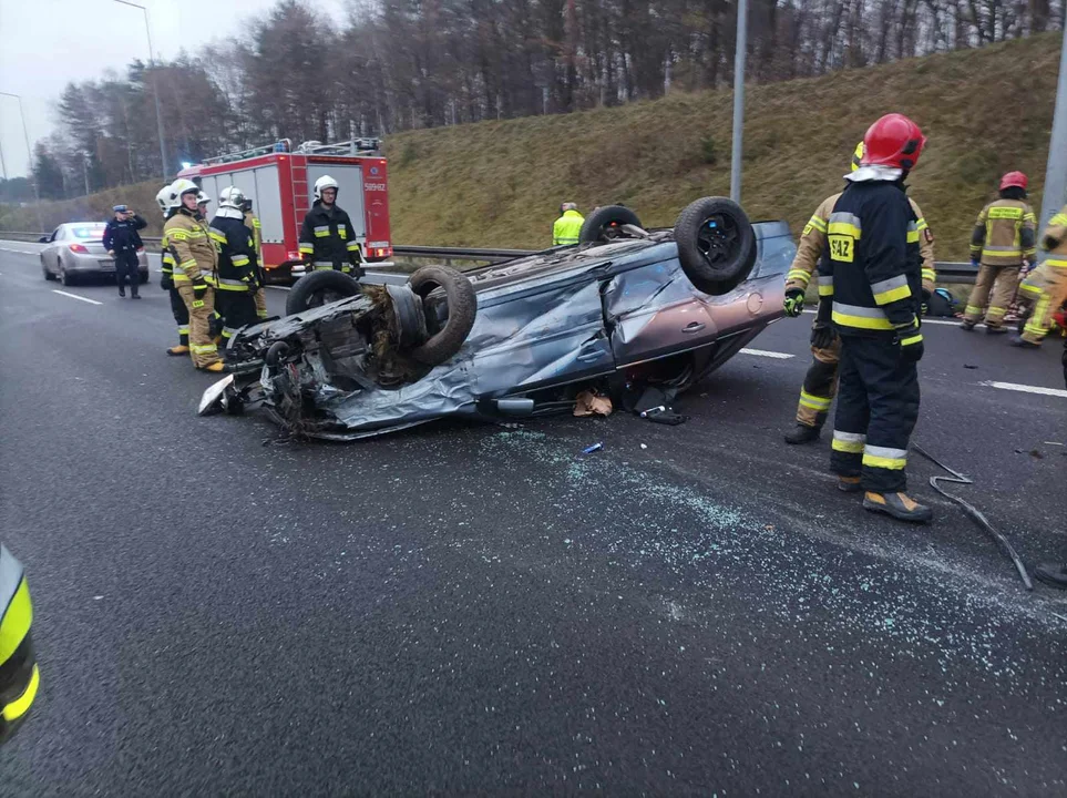 W sobotę 16 grudnia w Leonowie (gmina Zgierz) na autostradzie A2 samochód osobowy zderzył się z barierami, w konsekwencji czego dachował.