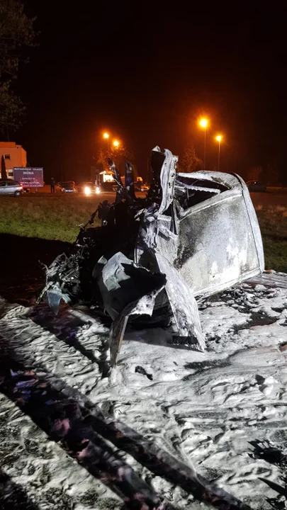 Zderzyły się dwa samochody, z czego jeden dachował w rowie a drugi stanął w płomieniach.