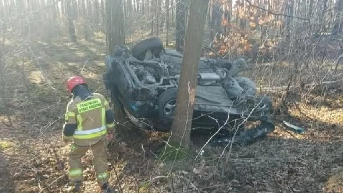 Samochód zjechał z drogi i dachował. Kierującą była 18-letnia mieszkanka powiatu zgierskiego, która została przetransportowana do szpitala na dalsze badania