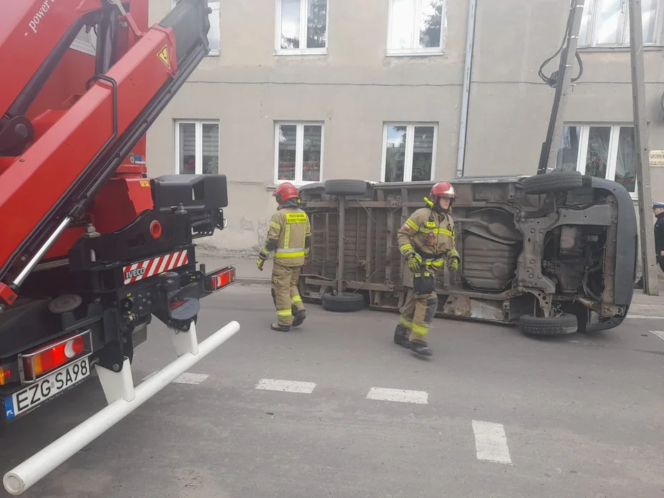 Siła uderzenia była tak duża, że fiat ducato wylądował na boku.