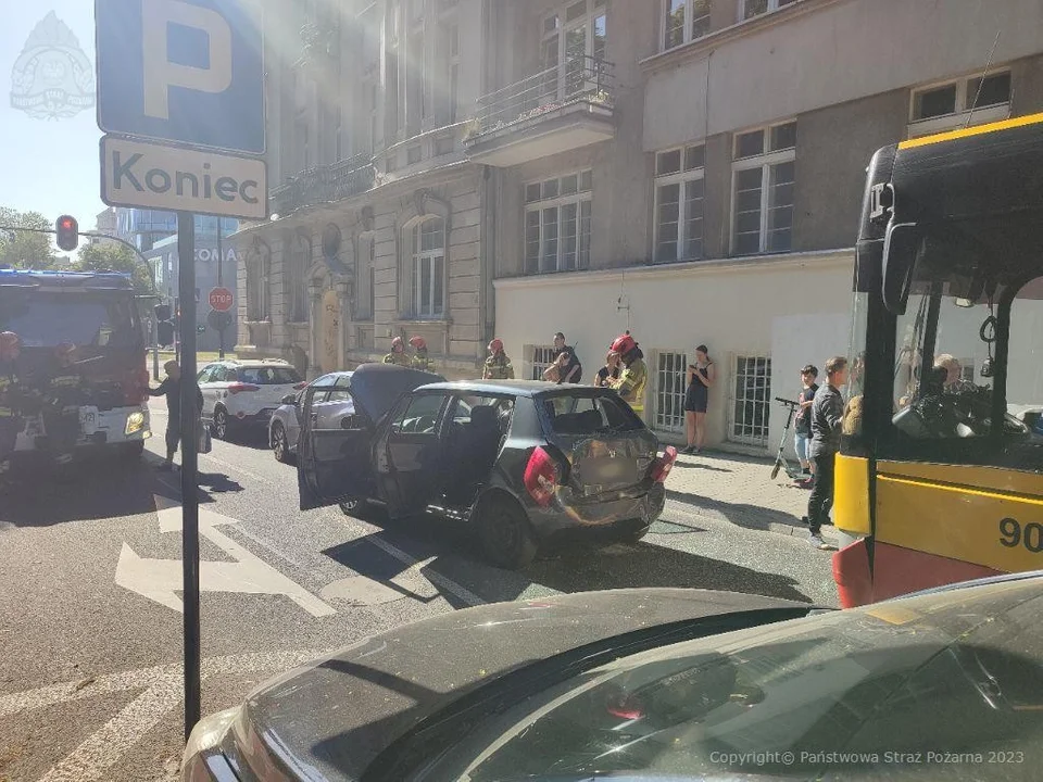 Utrudnienia po zderzeniu aut z autobusem w centrum Łodzi