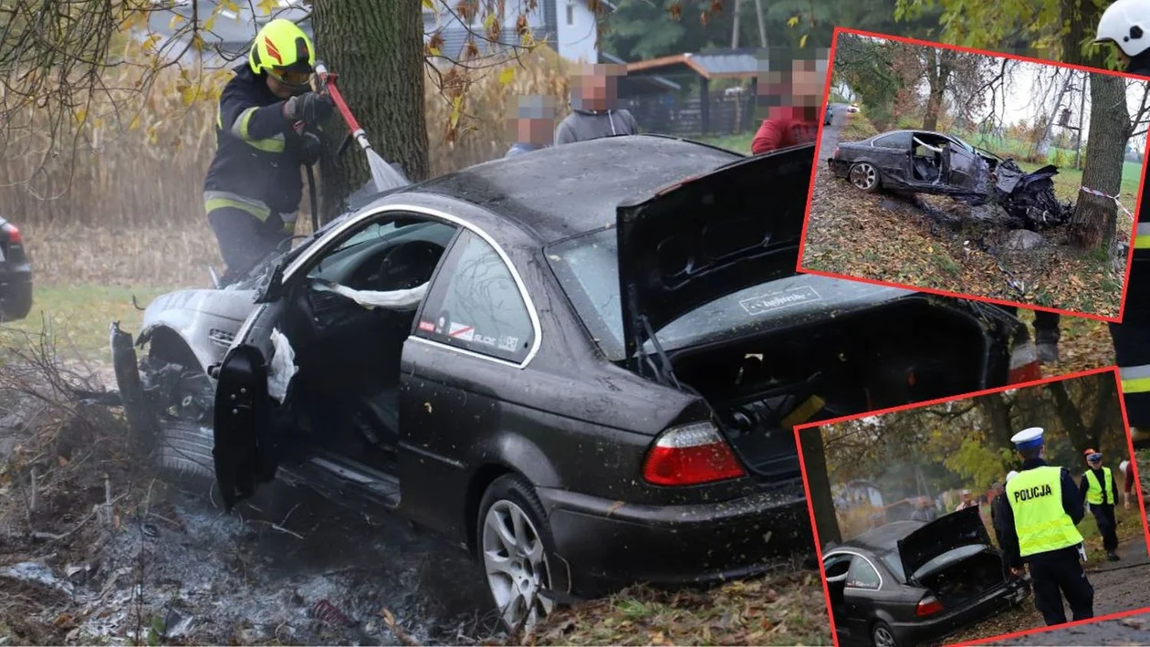 Z nieustalonych na chwilę obecną przyczyn kierowca osobowego BMW wypadł z drogi i uderzył w drzewo. Potem samochód się zapalił.