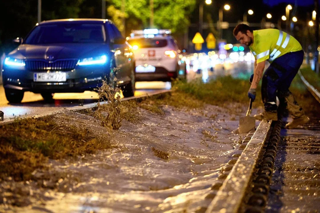 Autor: UMŁ | Opis: Na skutek zalania torowiska tramwajowego przez pianę technologiczną z maszyny wiercącej Faustyna od środowego (5 lipca) wieczora po al. Włókniarzy w obu kierunkach nie kursują tramwaje MPK.