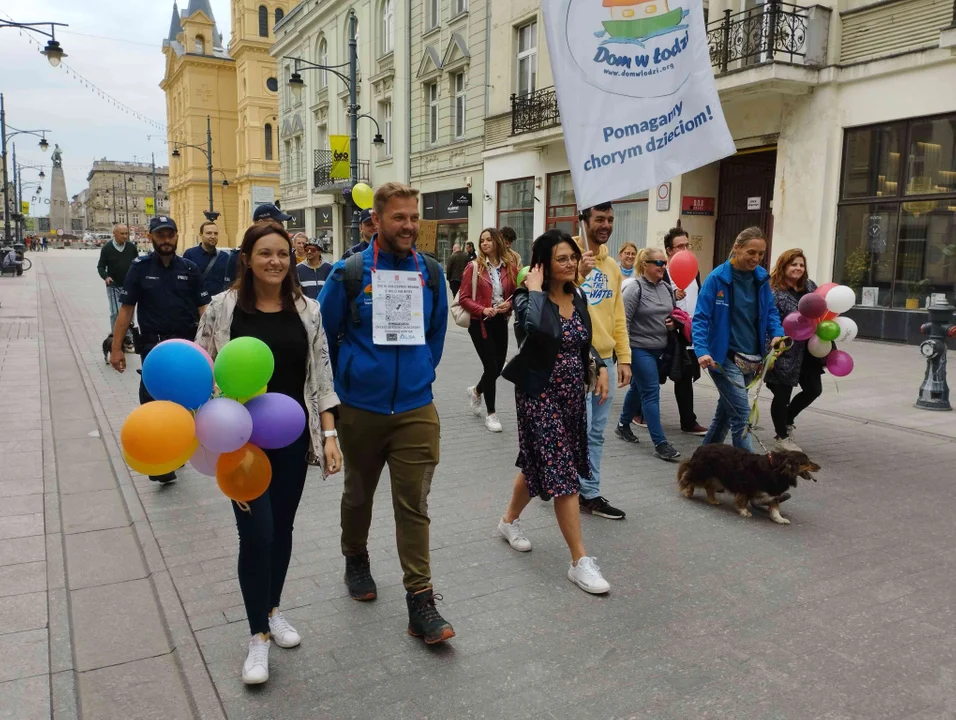 A Damianowi Szymańskiemu w spacerze Piotrkowską towarzyszyła cała fundacyjna ekipa. Przyłączyć się do niezwykłej inicjatywy postanowiła też łódzka policja.