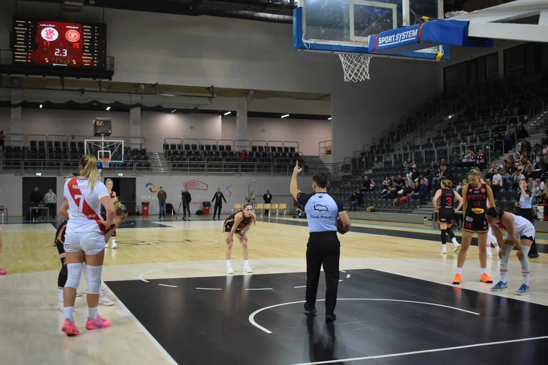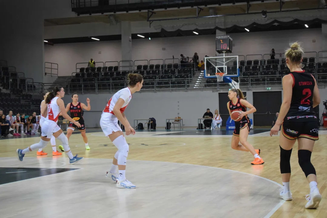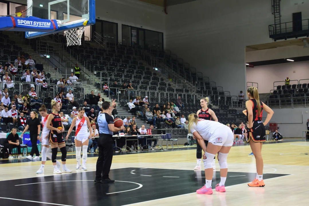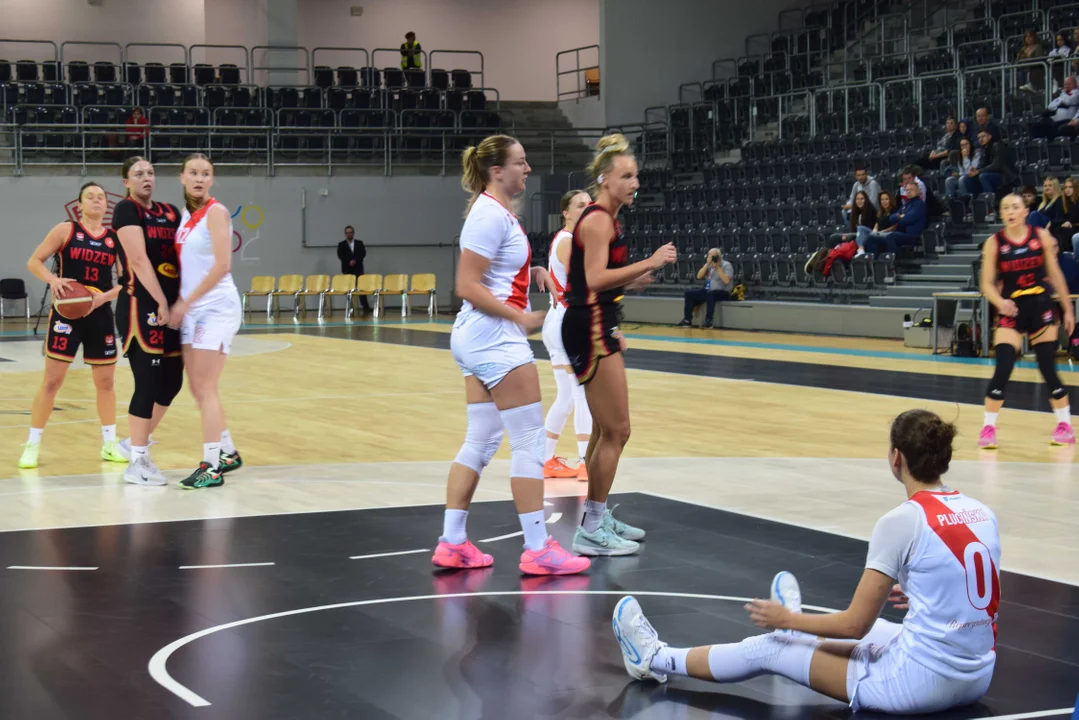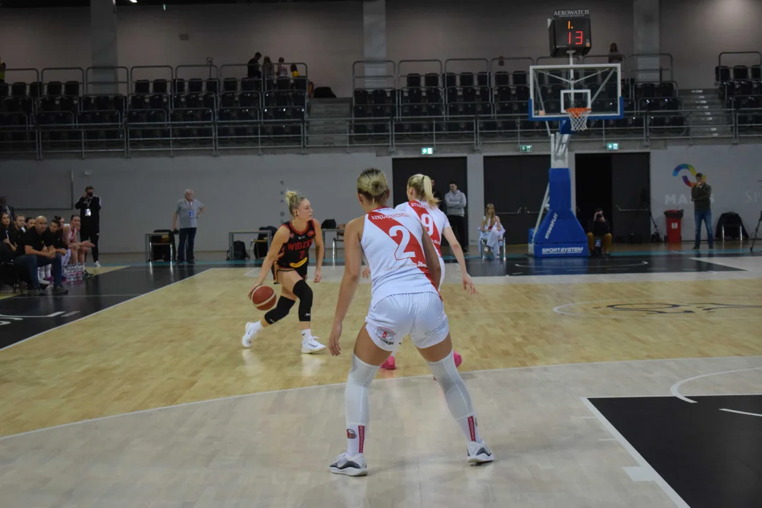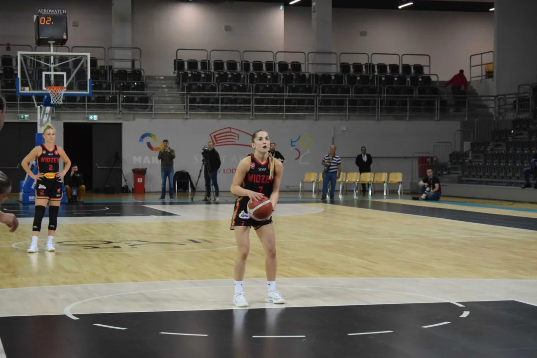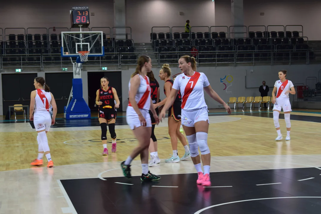 Początek meczu należał do przyjezdnych, a główną bohaterką pierwszych minut była Julia Drop. Doświadczona rozgrywająca, która po pięciu latach ponownie wystąpiła w barwach Widzewa, od razu zaznaczyła swoją obecność. W pierwszej kwarcie zdobyła 13 punktów.W końcówce pierwszej kwarty gospodynie zaczęły skuteczniej bronić i wykorzystywać błędy rywalek. Po punktach Wiktorii Puchacz wynik wyrównał się na 17:17, jednak Widzew zdołał odzyskać przewagę i zakończył pierwszą część meczu prowadzeniem 19:17.