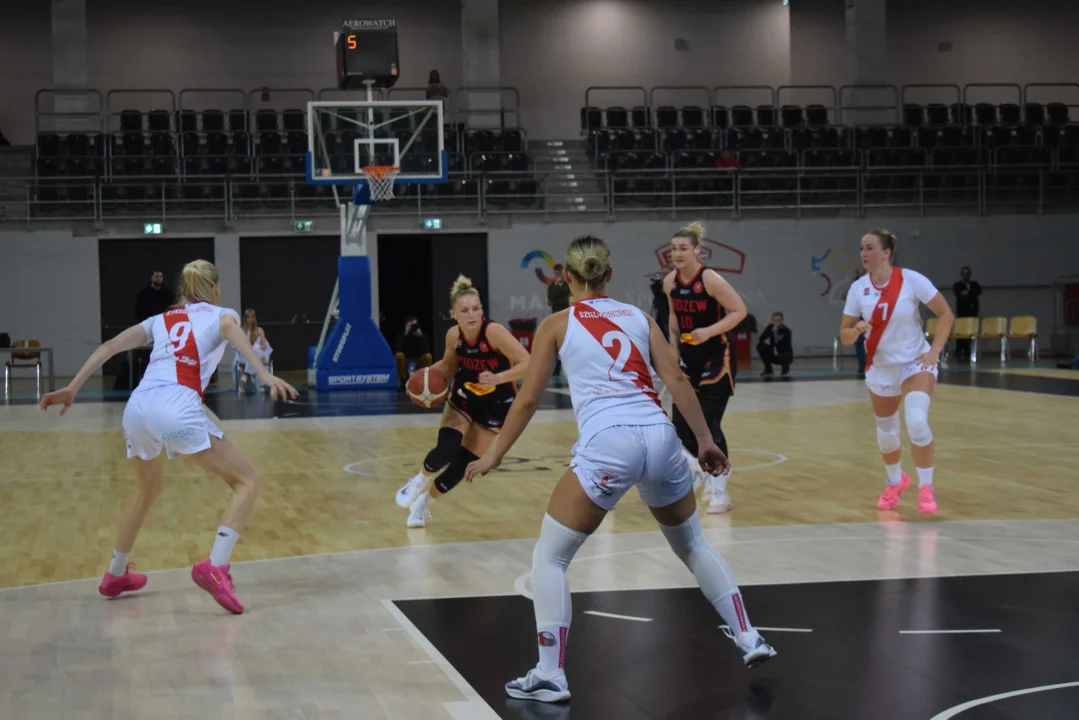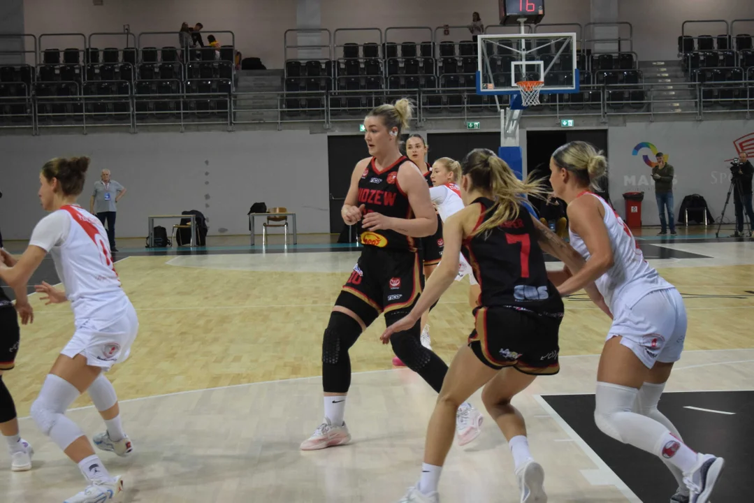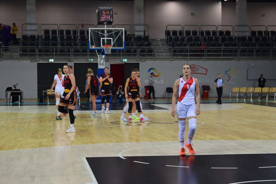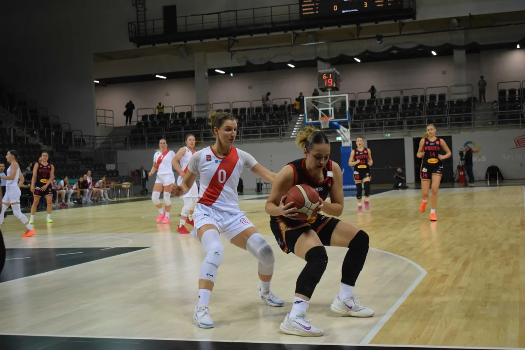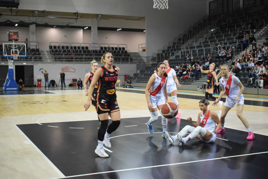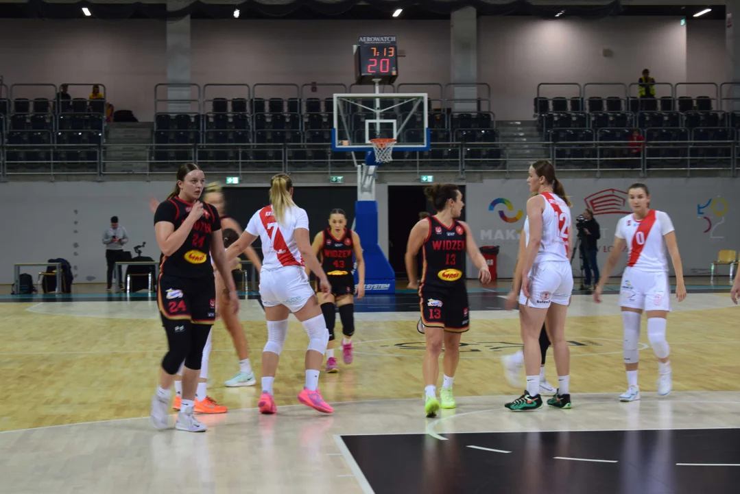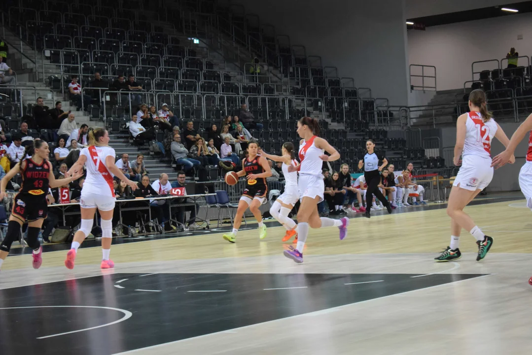 Początek meczu należał do przyjezdnych, a główną bohaterką pierwszych minut była Julia Drop. Doświadczona rozgrywająca, która po pięciu latach ponownie wystąpiła w barwach Widzewa, od razu zaznaczyła swoją obecność. W pierwszej kwarcie zdobyła 13 punktów.W końcówce pierwszej kwarty gospodynie zaczęły skuteczniej bronić i wykorzystywać błędy rywalek. Po punktach Wiktorii Puchacz wynik wyrównał się na 17:17, jednak Widzew zdołał odzyskać przewagę i zakończył pierwszą część meczu prowadzeniem 19:17.