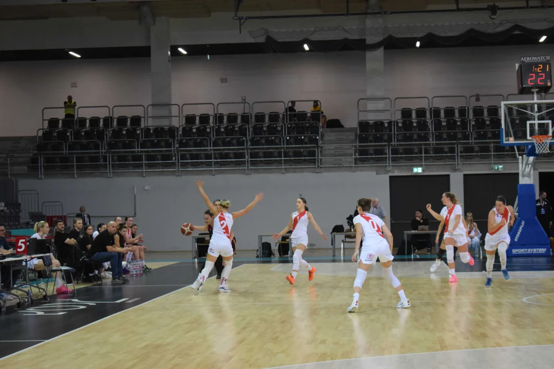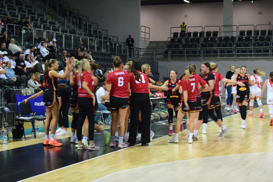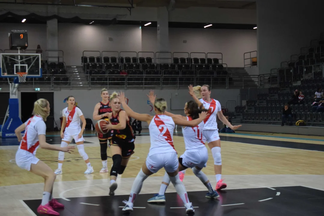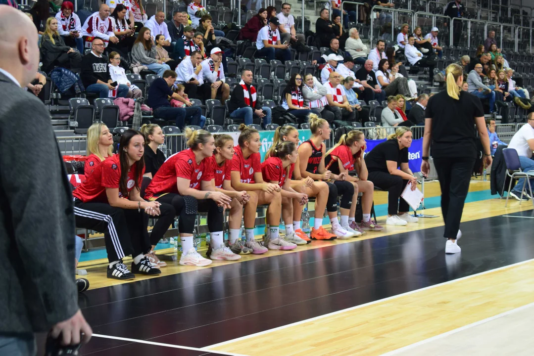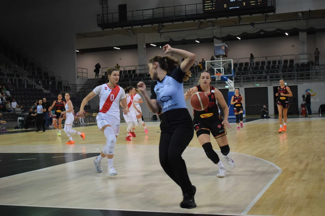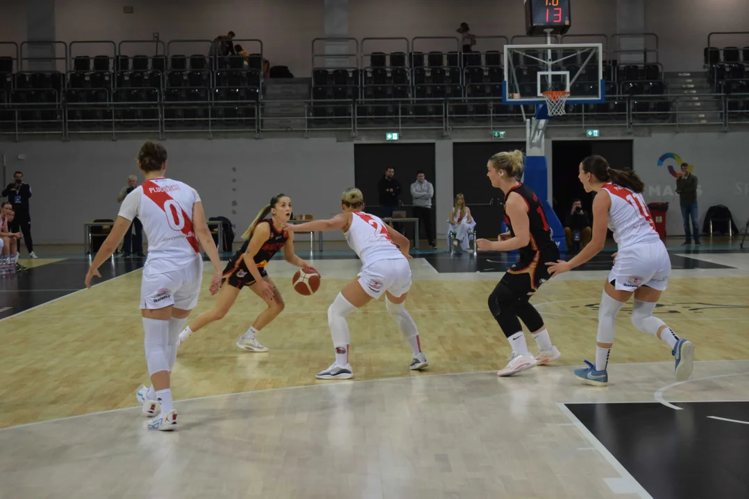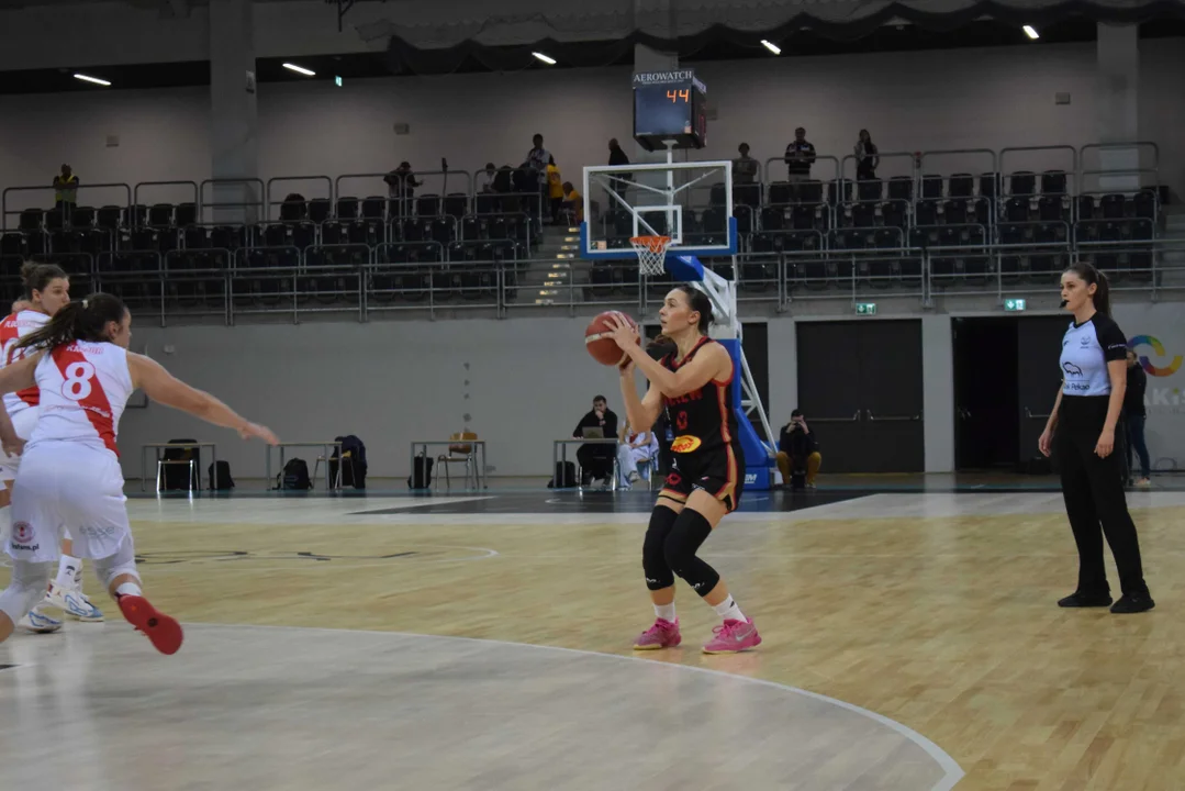 Początek meczu należał do przyjezdnych, a główną bohaterką pierwszych minut była Julia Drop. Doświadczona rozgrywająca, która po pięciu latach ponownie wystąpiła w barwach Widzewa, od razu zaznaczyła swoją obecność. W pierwszej kwarcie zdobyła 13 punktów.W końcówce pierwszej kwarty gospodynie zaczęły skuteczniej bronić i wykorzystywać błędy rywalek. Po punktach Wiktorii Puchacz wynik wyrównał się na 17:17, jednak Widzew zdołał odzyskać przewagę i zakończył pierwszą część meczu prowadzeniem 19:17.