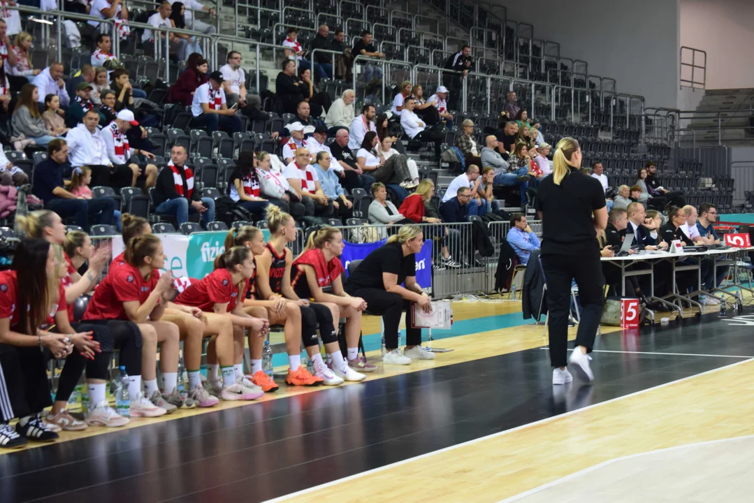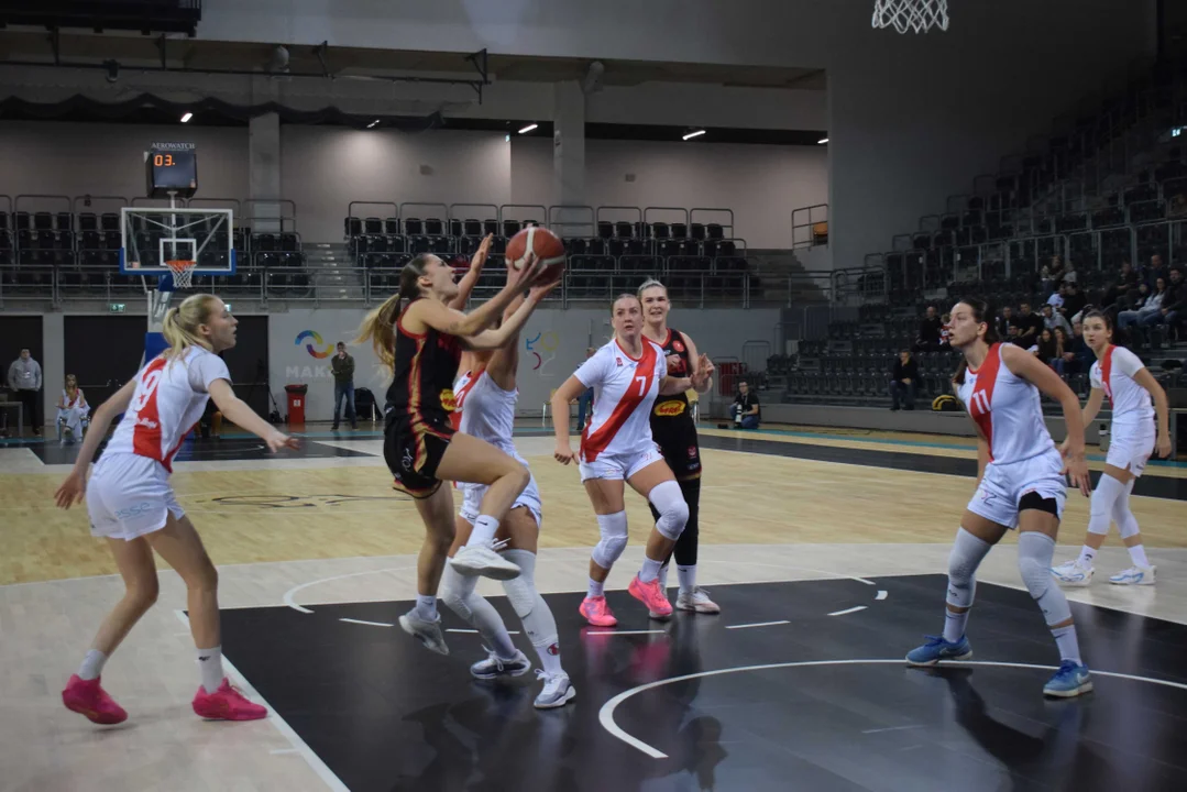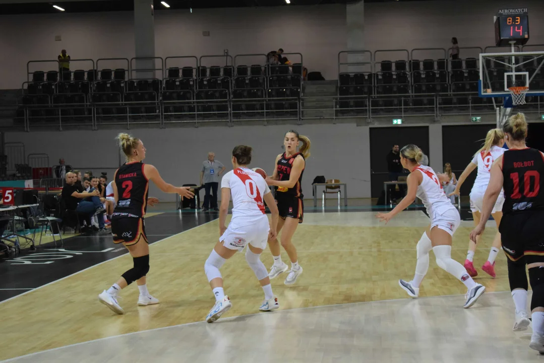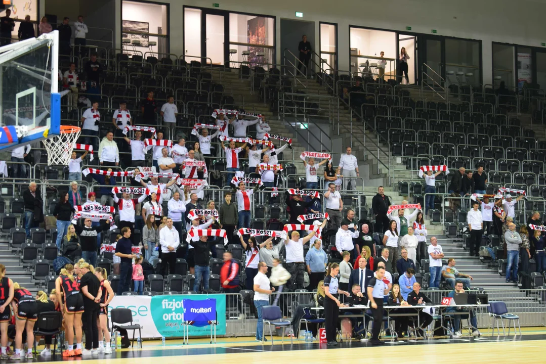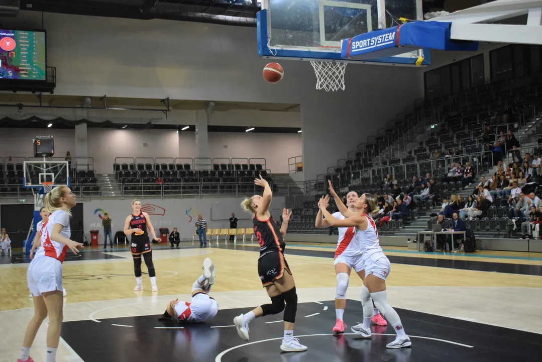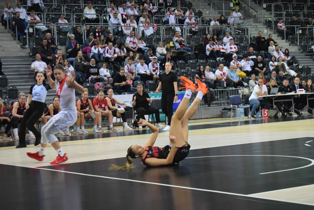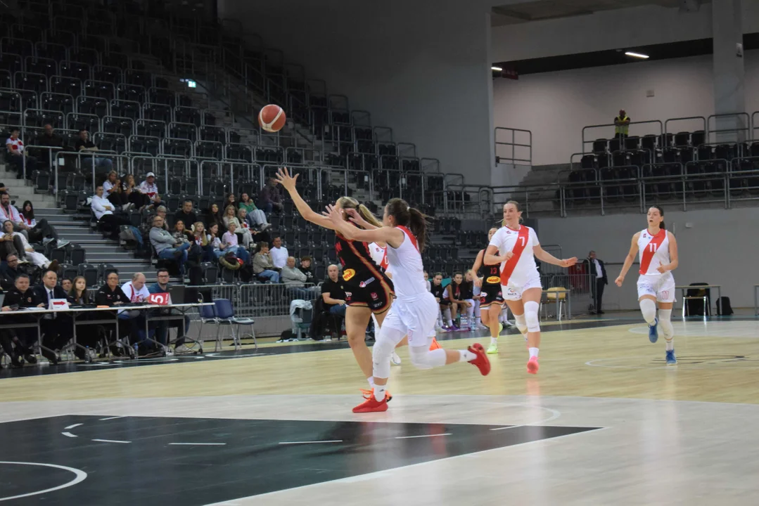 Początek meczu należał do przyjezdnych, a główną bohaterką pierwszych minut była Julia Drop. Doświadczona rozgrywająca, która po pięciu latach ponownie wystąpiła w barwach Widzewa, od razu zaznaczyła swoją obecność. W pierwszej kwarcie zdobyła 13 punktów.W końcówce pierwszej kwarty gospodynie zaczęły skuteczniej bronić i wykorzystywać błędy rywalek. Po punktach Wiktorii Puchacz wynik wyrównał się na 17:17, jednak Widzew zdołał odzyskać przewagę i zakończył pierwszą część meczu prowadzeniem 19:17.