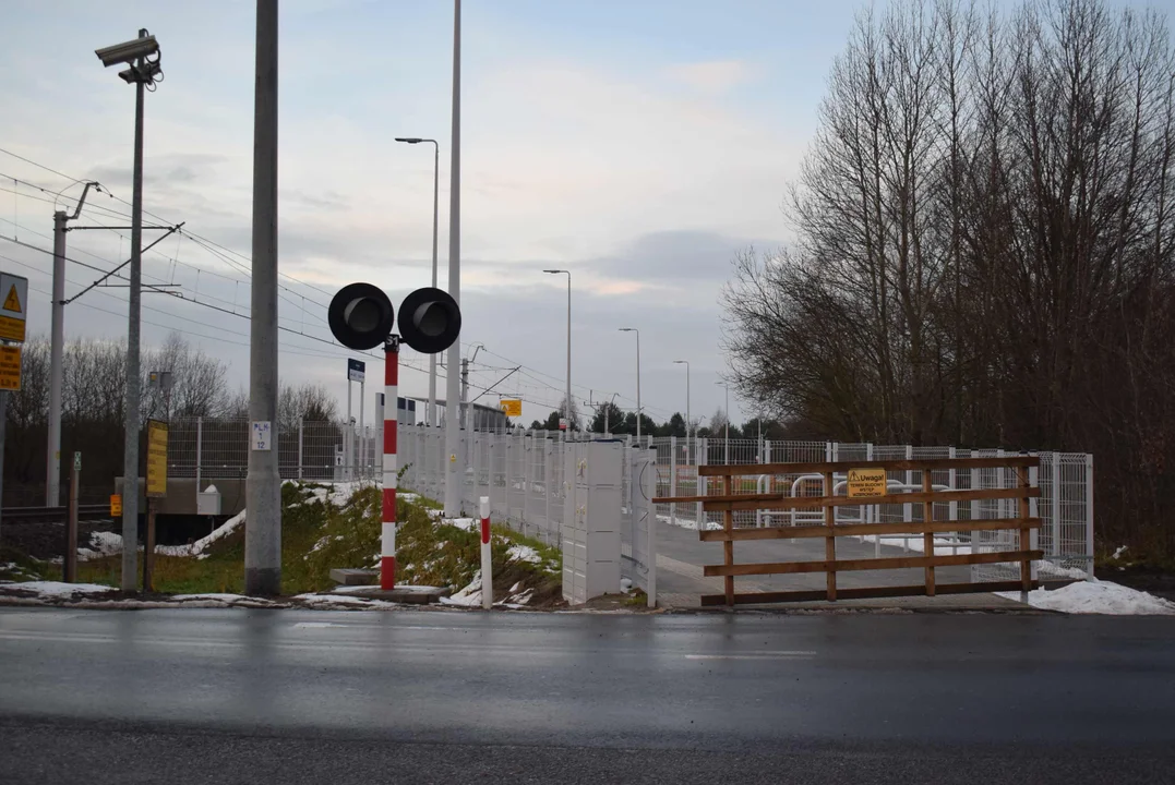 Od strony skrzyżowania wejście na stację zastawiono drewnianą paletą z napisem „zakaz wstępu”. W środku stacji wybudowano kładkę, która docelowo będzie prowadzić na parking. Teraz wychodzi prosto na ulicę i błotniste pobocze, gdzie w godzinach szczytu jest zwiększony ruch samochodowy.