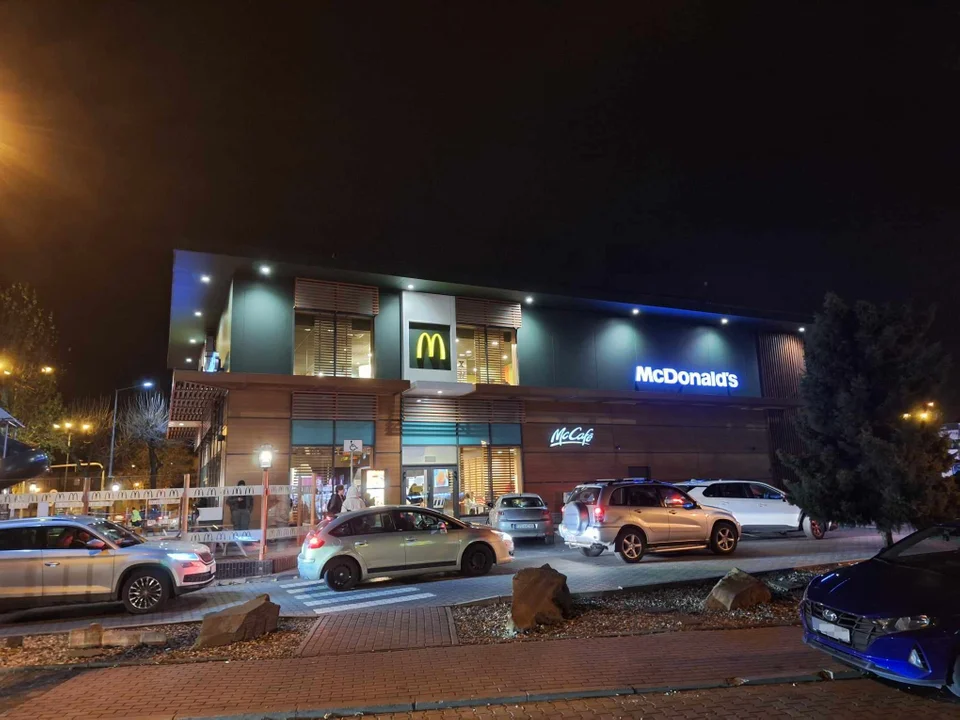 Na parkingu przy Media Expert był duży ruch, a większość miejsc była zajęta. Inaczej było na parkingu przy samej restauracji McDonald's. Wiele miejsc parkingowych zostało pustych, jednak ustawił się długi rząd samochodów do zamówienia w McDrive.
