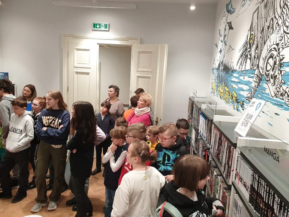 Wycieczka przyciągnęła aż 33 małych uczestników. Część z nich chciała odwiedzić salę gamingową, która mieści się w tej bibliotece, część Legowisko, czyli miejsce, gdzie spotkamy mnóstwo klocków lego, którymi możemy się do woli bawić i układać.