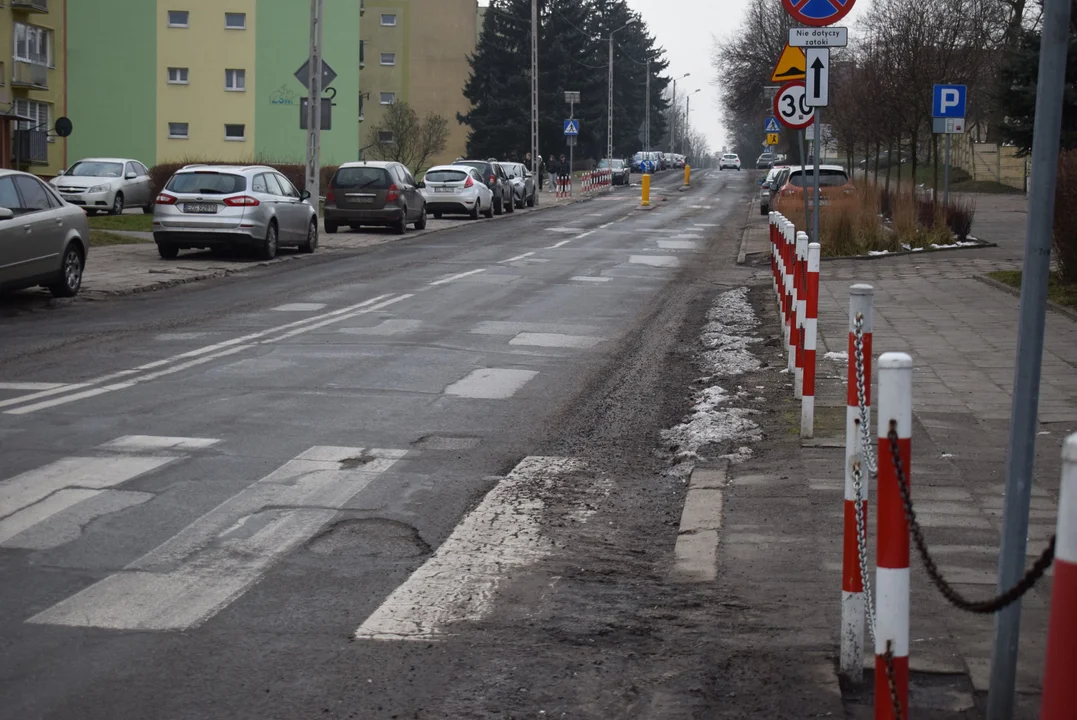 Chodnik jest bardzo szeroki. Na części i tak stoją samochody. Mogliby zwęzić chodnik i zrobić częściowo parking, jak pod szkołą, albo zrobić zakaz parkowania i podzielić chodnik na pół ze ścieżką rowerową.