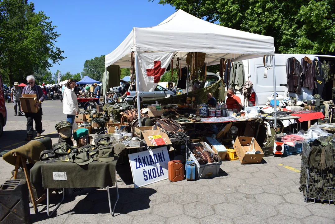 Militaria również odgrywają istotną rolę na Moto Weteran Bazarze. Na stoiskach można było znaleźć wojskową odzież, elementów uzbrojenia i biała broń. Wokół słychać było warkot silników, a wielu odwiedzających przyjechało na bazar motocyklami.
