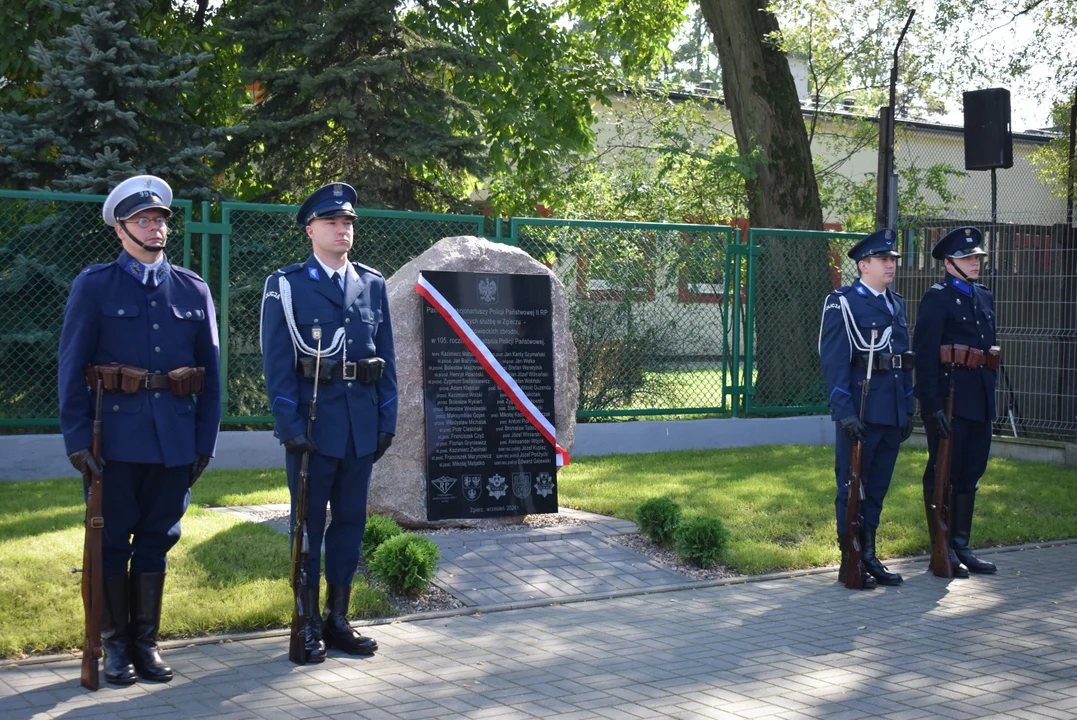 Po jednej stronie pamiątkowy mural, po drugiej kamień z tablicą upamiętniającą. Nowy pomnik pojawił się z okazji rocznicy ataku ZSRR na Polskę. Tablica pamięci jest także upamiętnieniem 105 rocznicy powstania policji i jest poświęcona funkcjonariuszom policji państwowej II RP pełniących służbę w Zgierzu, ofiar sowieckich zbrodni. Znajdziemy na niej nazwiska poległych funkcjonariuszy.