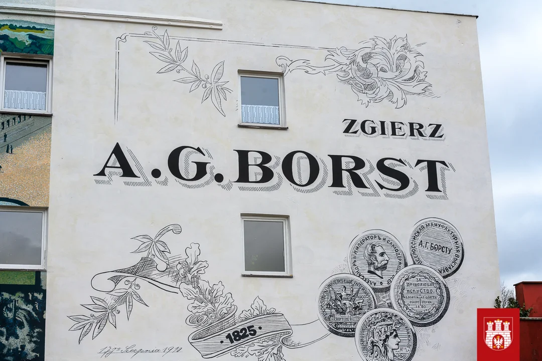 Mural znajduje się na ścianie budynku przy ul. Narutowicza 7, jednak zobaczymy go od ulicy Rembowskiego, naprzeciwko Domu Tkacza. Przedstawia m.in. dawną fabrykę Borsta i inne ślady przemysłu w Zgierzu sprzed ponad 100 lat. Rycina, która została odtworzona na ścianie budynku, pochodzi z 1910 roku.