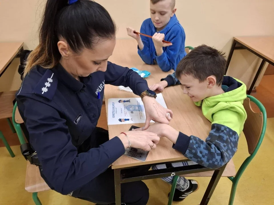 Podczas spotkania nie zabrakło elementów interaktywnych. Jedną z największych atrakcji okazała się zabawa z daktyloskopią. Dzieci mogły poznać podstawy pracy techników kryminalistyki i własnoręcznie wykonać odbitki swoich linii papilarnych. Ćwiczenie to wywołało wiele radości i zainteresowania, jednocześnie przybliżając uczniom praktyczne aspekty pracy policji.