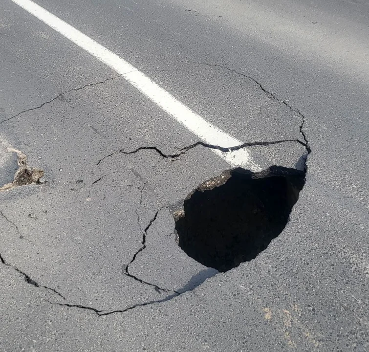 Na fotografiach widać duże zapadliska na ulicy Rembowskiego i Łagiewnickiej. Te dziury są na tyle duże, że mogą grozić wypadkiem lub co najmniej kolizją. Łatwo też o złamanie nogi, jeśli byśmy w nie wpadli.