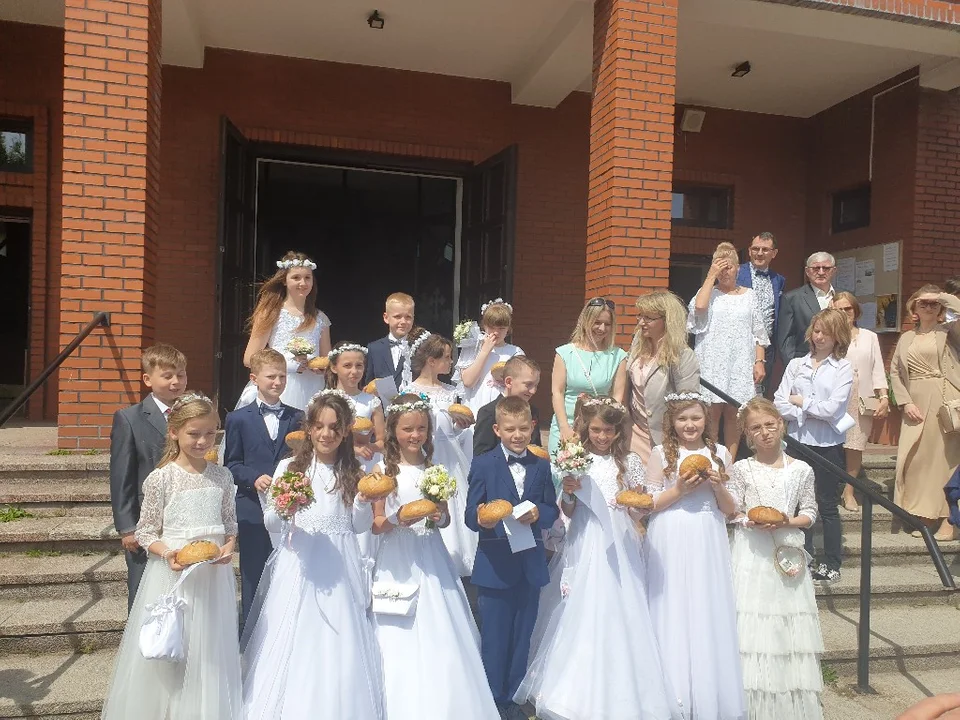 Pogoda dopisała, było ponad 20 stopni i piękne słońce. Część wiernych, a zarazem przybyłych gości siedziała na ławkach na zewnątrz. Dzieci w trakcie mszy miała dużo kwestii do powiedzenia przez mikrofon. Niosły też kosz z darami. Wszystkie dzieci pierwszokomunijne dostały małe wypieczone chlebki, by po uroczystości podzielić się nim z wszystkimi gośćmi. W trakcie mszy śpiewała schola parafialna w kościele. Po wydarzeniu wszystkie dziewczynki w odświętnych białych sukniach i chłopcy w garniturach ustawiali się do zdjęć grupowych oraz indywidualnych. Od jutra rozpoczyna się dla nich tzw. biały tydzień. A na razie uroczysty obiad z rodziną i zapewne prezenty. Zapraszamy do galerii zdjęć z tego wydarzenia.